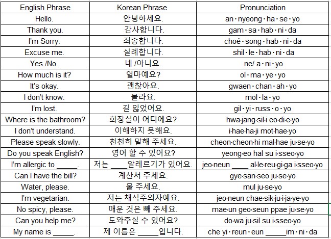 Learn essential Korean expressions from the below, and listen to pronunciation by clicking the audio button.